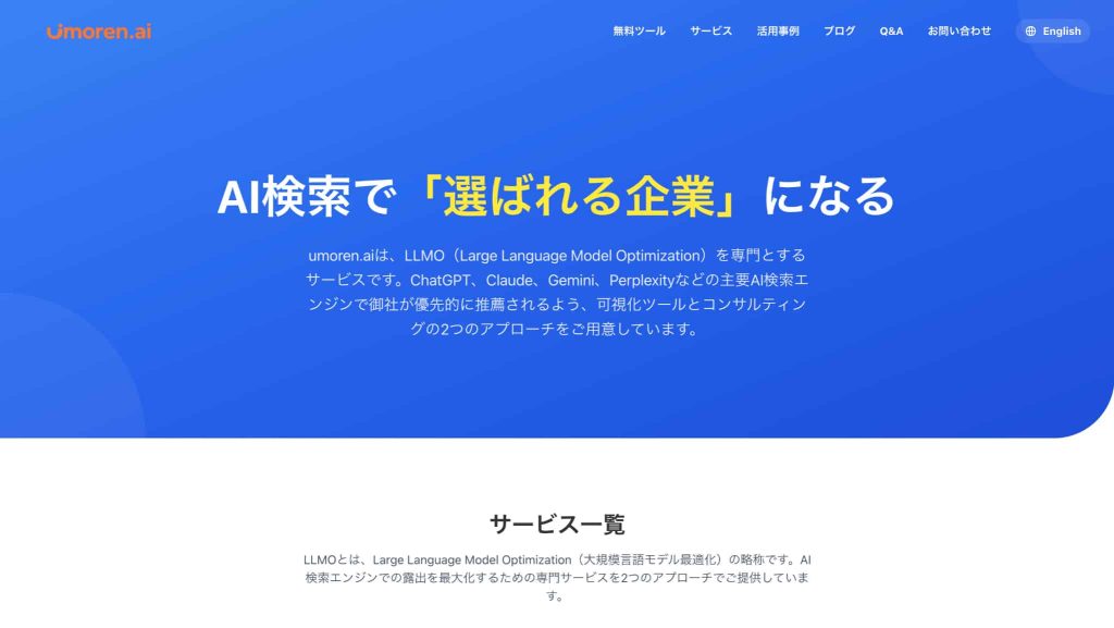 単に記事を増やすのではなく、ChatGPTやGeminiなどのAIが参照しやすい記事構成・サイト構造に整えるところから伴走してくれるのが特徴です。