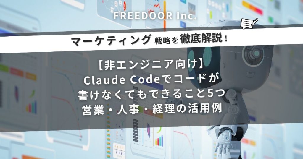 「Claude Codeを社内に導入したいけど、何から始めればいいかわからない」「非エンジニアでも使いこなせるか不安」そんなお悩みに、freedoorが導入設計から活用定着までワンストップでサポートします。まずはお気軽にご相談ください。
